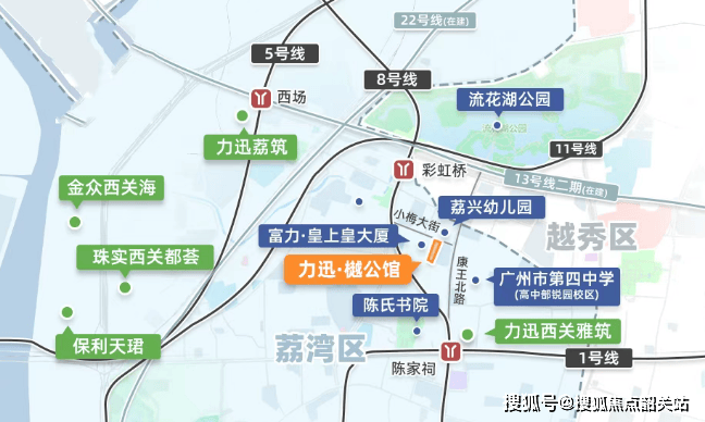 距离彩虹桥地铁站或陈家祠地铁站步行时间约6分钟,力迅樾公馆坐拥双地铁交汇的便捷交通网络。项目地处老荔湾康王北路,与越秀区仅一公里之隔,500米范围内汇聚了陈家祠站(1号线号线号线号线号线)两大轨道交通节点。这种高密度的地铁覆盖,在老城区项目中实属难得,极大地提升了居民的出行效率与生活半径。