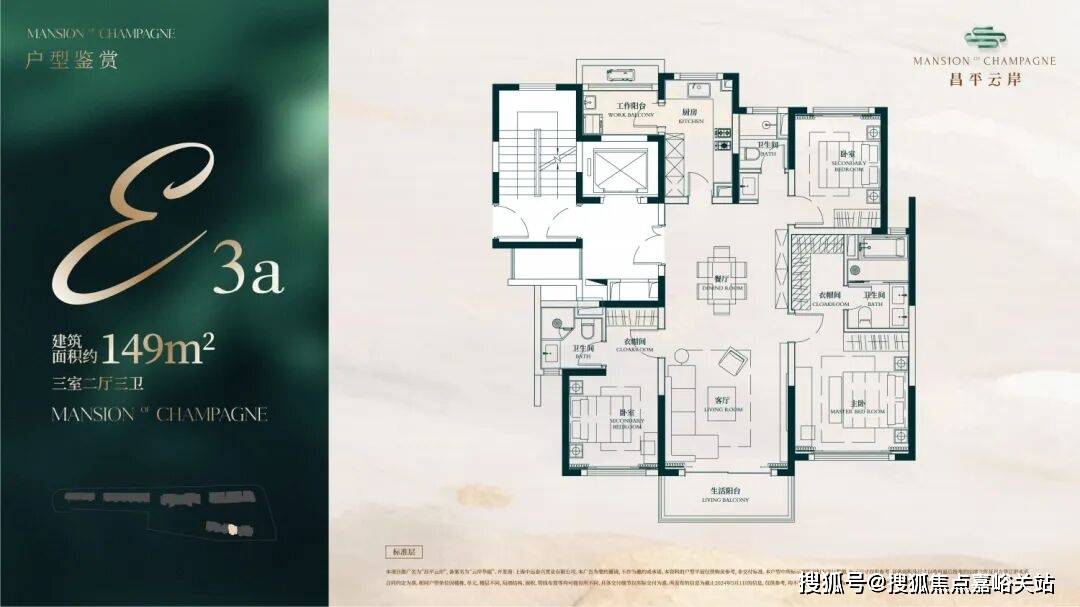 此户型最靠近苏州河,特地设计了270度转角阳台直面苏河一线个套房设计,尊崇感十足!此户型仅有6套,珍藏属性拉满!