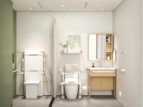 针对传统卫生间改造流程繁琐、周期长的痛点,瑞尔特创新性地提出了 “以无障碍升降系统为核心的整体装配式适老卫浴解决方案” 。该方案将复杂的卫浴空间化繁为简,通过集成供电、墙板、底盘、吊顶、排给水、部品部件六大系统模块化预制,实现施工现场即装即用,极大提升了改造效率,降低了用户的时间与精力成本,为家庭、养老机构、医疗机构等提供了高效、可靠的整体卫浴焕新选择。