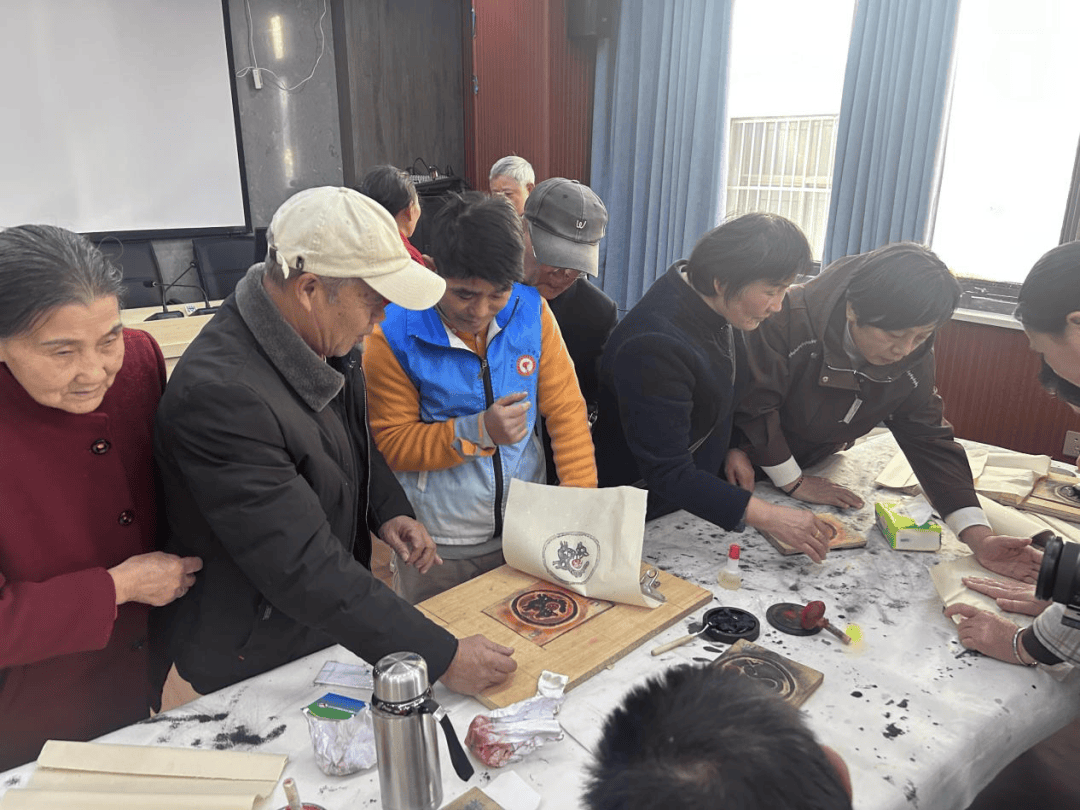 活动现场,非遗导师详细介绍了雕板翻墨瓦当这一古老技艺的历史渊源和文化内涵。邹双勇通过实物展示、技艺演示和现场教学相结合的方式,让参与活动的居民们近距离感受传统技艺的独特魅力。实践环节,非遗导师手把手地教居民们雕板翻墨的基本技法。居民们热情高涨,认真学习每一个技术要点,在导师耐心指导下,大家纷纷动手体验,现场气氛十分活跃。