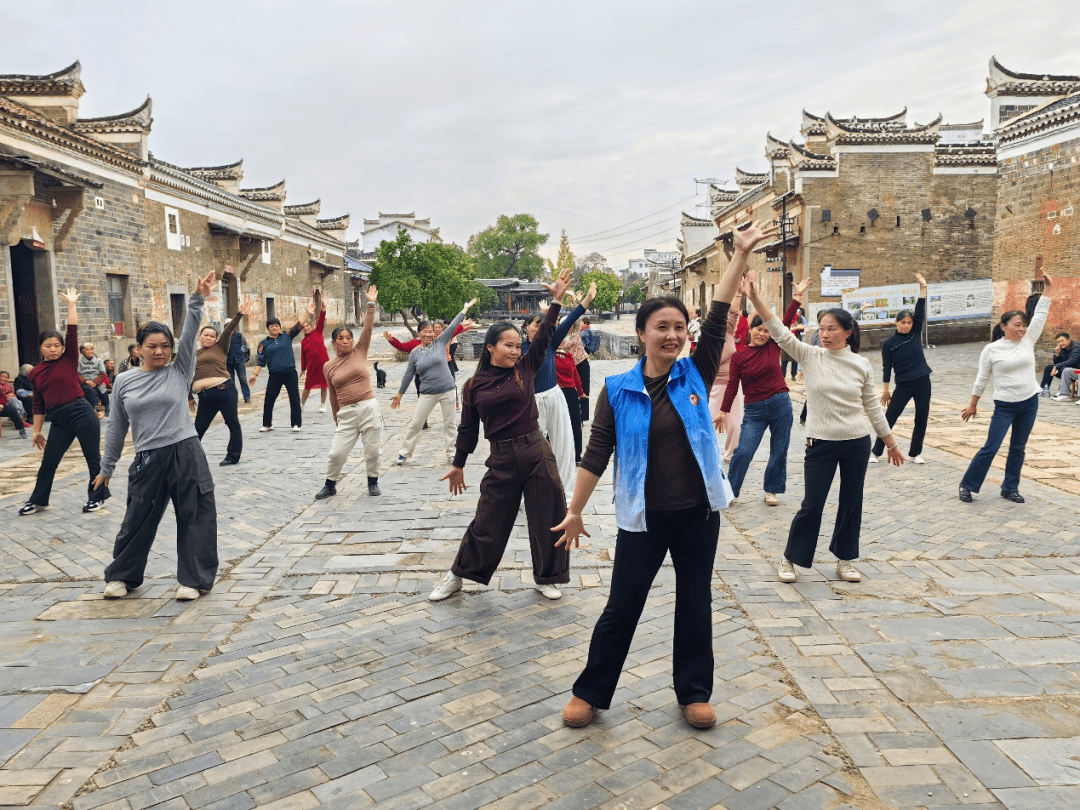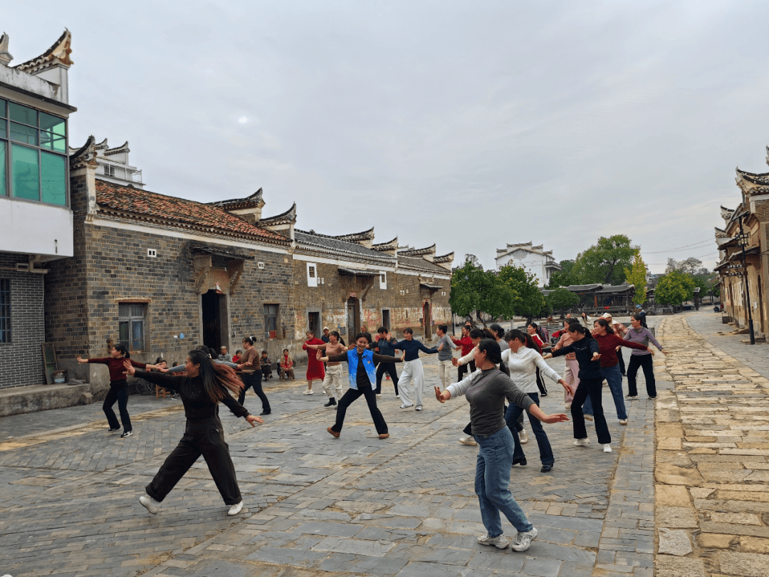 11月24日,丰城市湖塘乡坑里村古戏台广场热闹非凡,文艺导师熊洁为当地舞蹈热爱者带来专业辅导,一场充满乡土气息的舞蹈教学活动温馨启幕,吸引数十名群众踊跃参与。