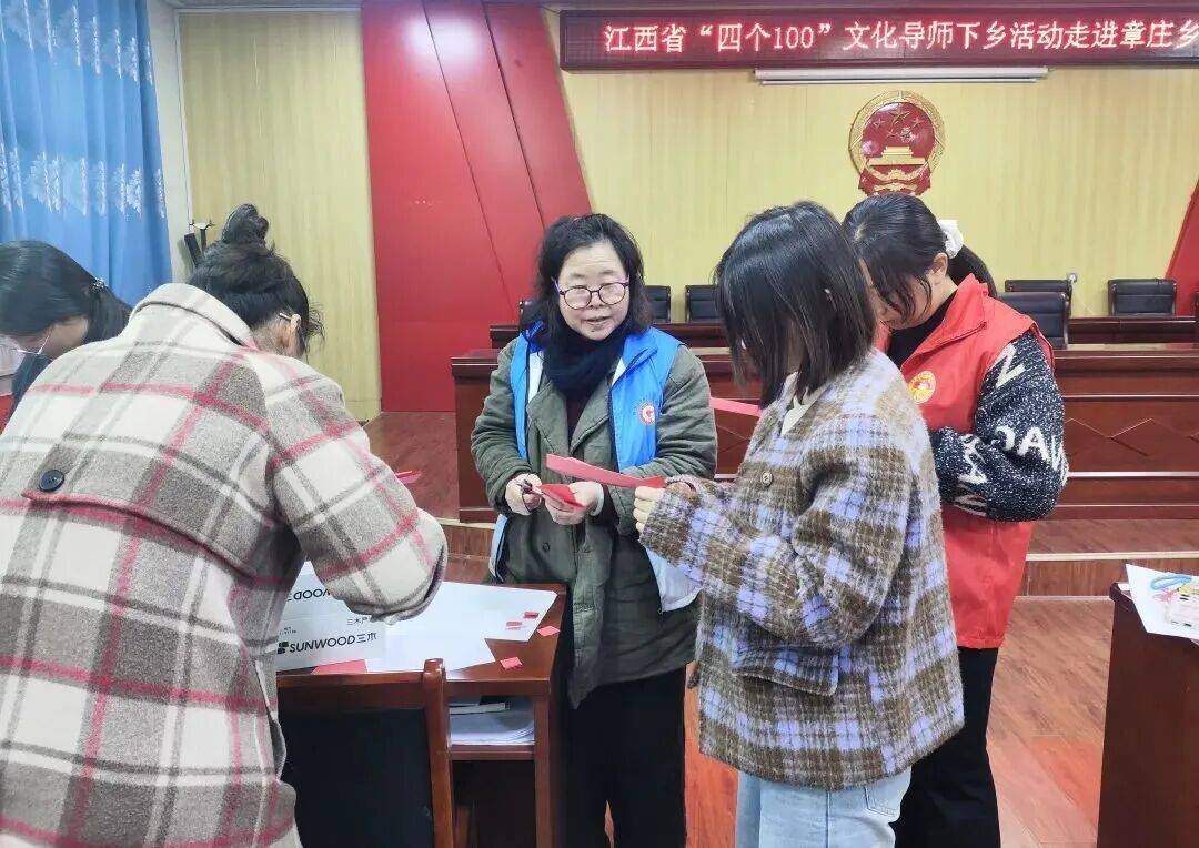 11月26日,江西省“四个100”文化导师下乡计划走进章庄乡,非遗导师马群莲带来了一场热闹的非遗互动教学活动,让村民们在家门口感受传统艺术的魅力。