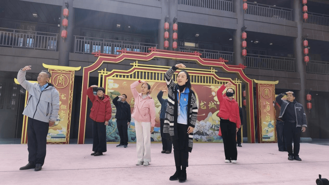 教学中,熊洁从基础站姿、手位要领入手,用通俗语言拆解动作,示范指导。面对部分群众节奏跟不上、动作不协调的问题,她用心纠正、反复点拨,亲切的笑容、耐心的鼓励温暖着全场每一个人。大家热情高涨,跟着导师的节奏认真模仿,从生疏僵硬到舒展流畅,进步十分明显。