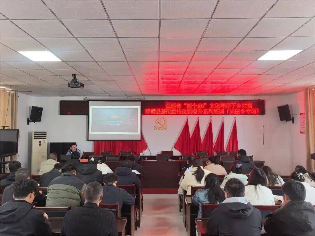 11月28日,新闻导师覃文走进浮梁县兴田乡新时代文明实践所,开展“四个100”文化导师下乡计划——基层宣传技能提升系列培训活动,乡村两级青年干部、文明实践员、乡村振兴专干、兴田学校教师代表共计30余人参与活动。